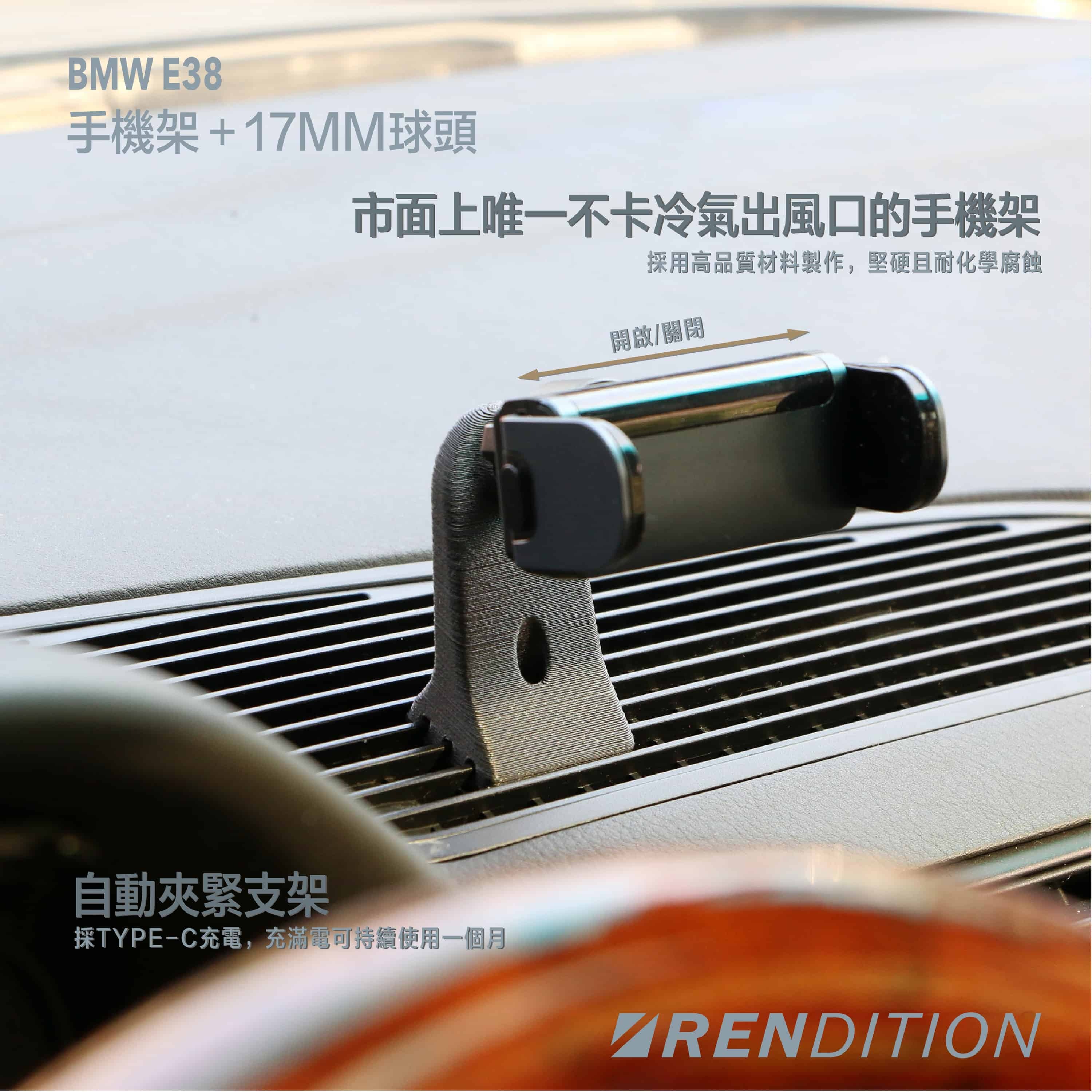 ● 完美卡入 E38 原廠前擋玻璃出風口後螺絲對鎖、手機穩固不掉落